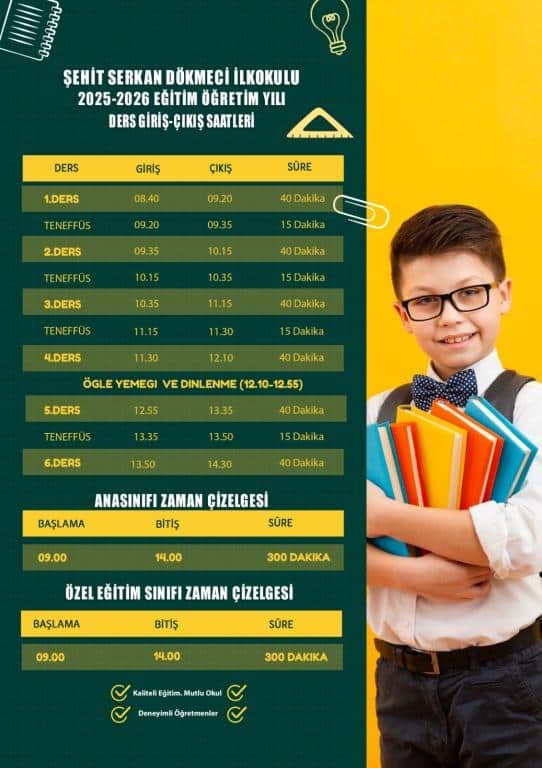 2025-2026 EĞİTİM ÖĞRETİM YILI DERS ZAMAN ÇİZELGESİ