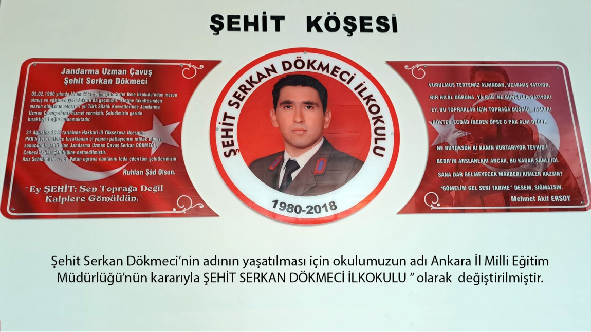 Şehit Serkan Dökmeci'nin adının yaşatılması için Alper Tunga İlkokulu'nun adı ŞEHİT SERKAN DÖKMECİ İLKOKULU olarak Ankara İl Milli Eğitim Müdürlüğü'nün kararıyla değiştirilmiştir.