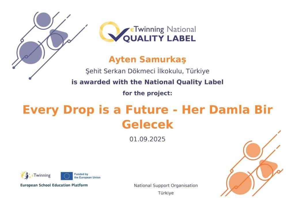 Okulumuz 3 E sınıfı öğrencileri, öğretmenleri Ayten Samurkaş rehberliğinde yürüttükleri 4 ayrı eTwinning projesinde Ulusal Kalite Etiketi ile ödüllendirildiler.